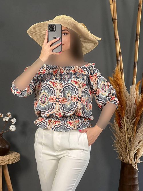 شومیز یقه قایقی گلدار 1182