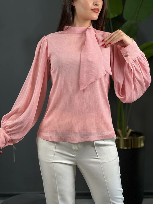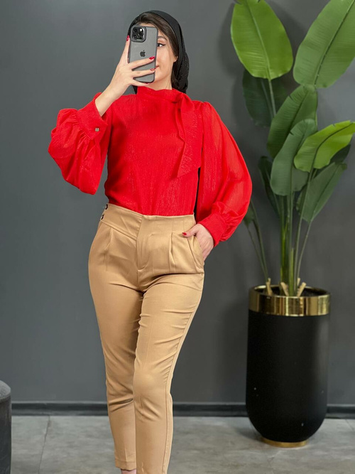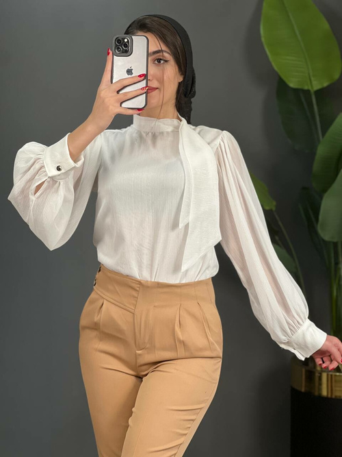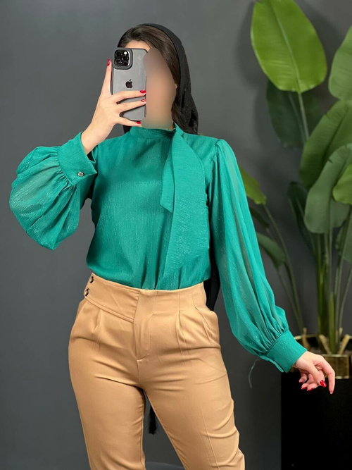 • جنس شومیز، حریر کریشه آستردار است.