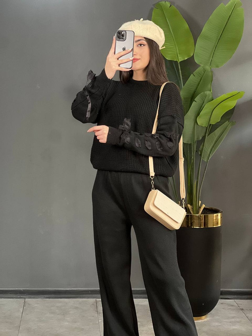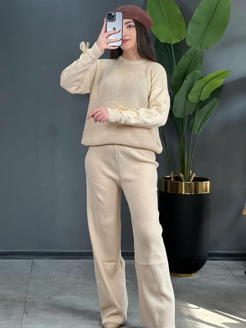 - جنس ست بلوز و شلوار، بافت است.