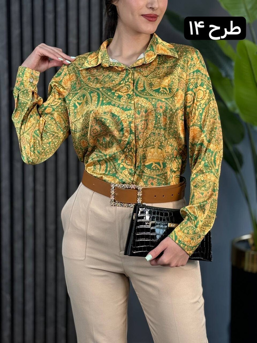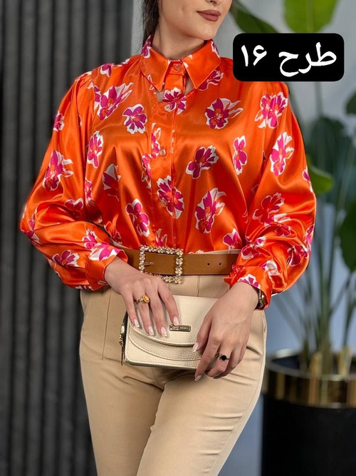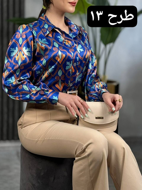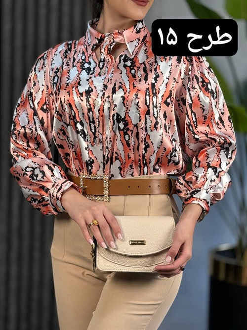 جنس شومیز :ساتن فری سایز (مناسب سایز های 38 تا 44 میباشد) قد : 70 دورسینه : 114 قد آستین از یقه :74 قد آستین از سر شانه : 60 دور بازو : 42