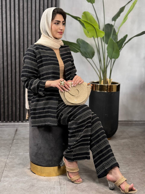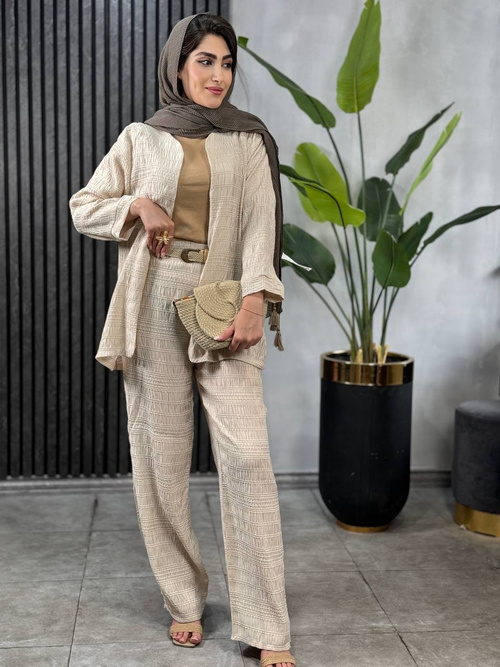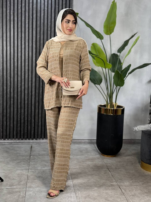 جنس ست : کوک دوزیسایز: فری سایز 38 تا 44قد مدل: 170 سانتیمترسایز مدل: 38