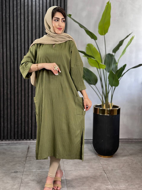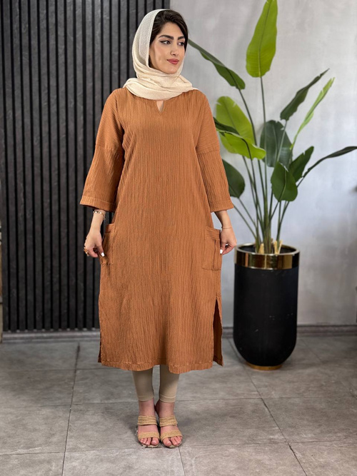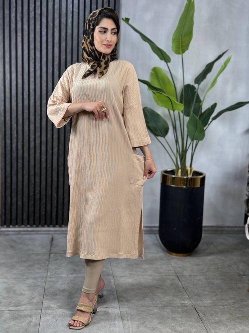 جنس پیراهن : کراشسایز: فری سایز 38 تا 44قد مدل: 170 سانتیمترسایز مدل: 38