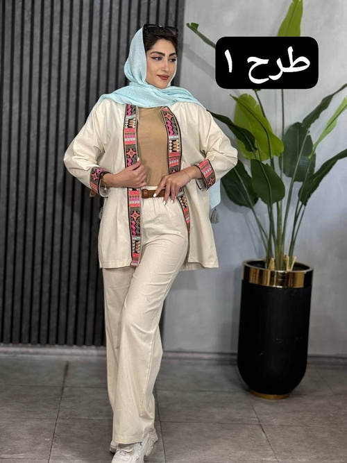 جنس ست : لیننسایز: فری سایز 38 تا 44قد مدل: 170 سانتیمترسایز مدل: 38