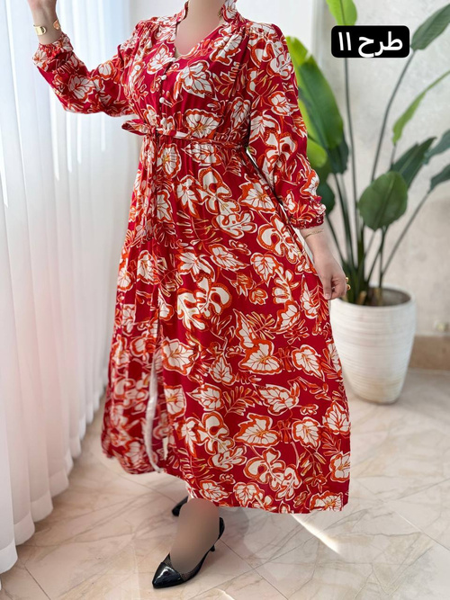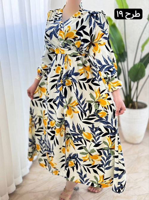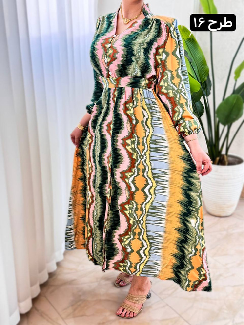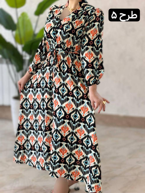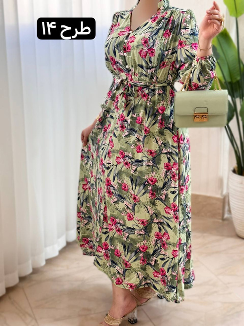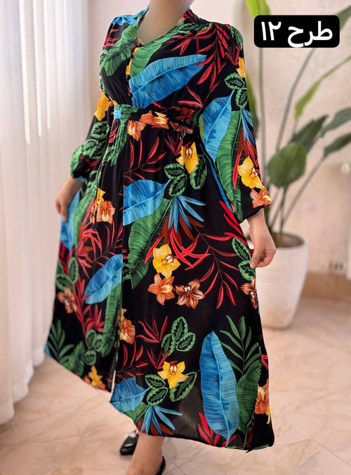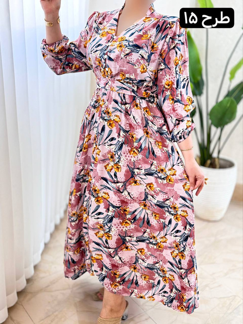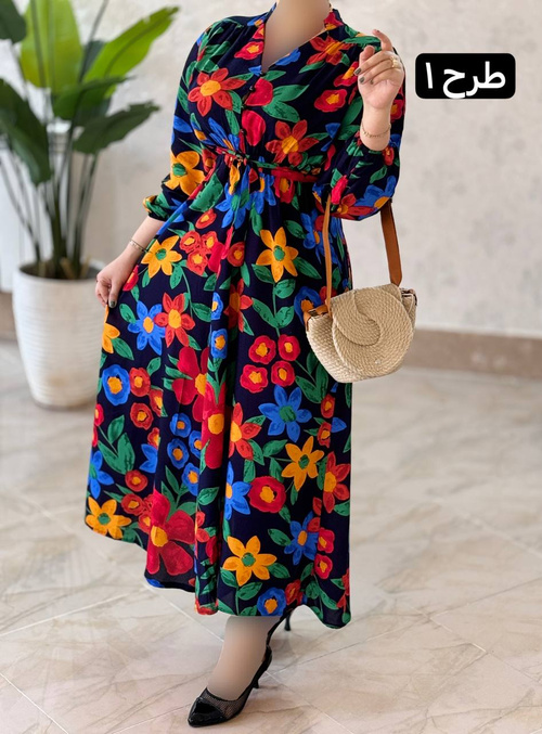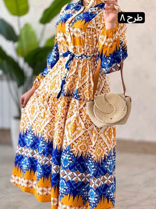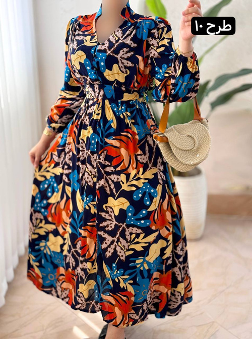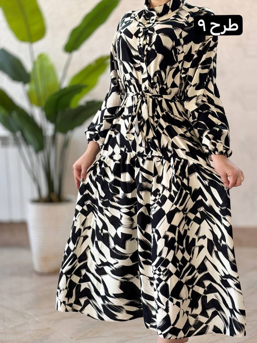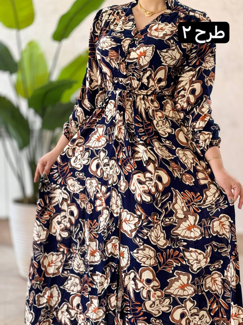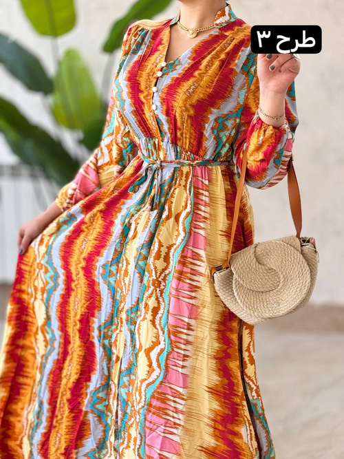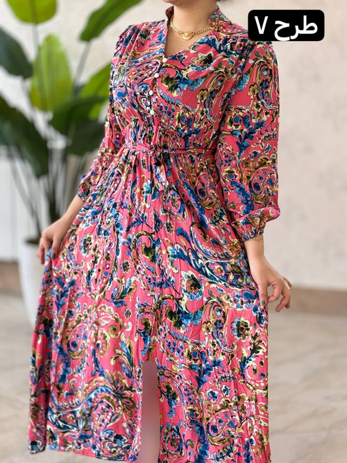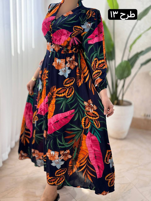 پیراهن نخی مزونینخ ترک و چاپ درجه یکفری سایز (38-40-42-44-46)قد: 135دور سینه: 110