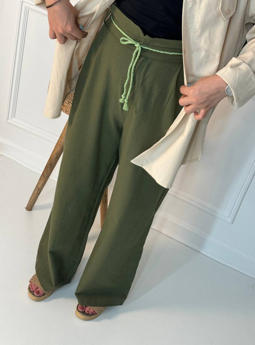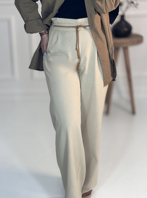 جنس کار : لیننسایز: فری سایز از 38 تا 44(پشت کمر شلوار کش دارد)قد شلوار: 105دوران: 64دور کمر در حالت عالی: 74 در حالت کشسانی 89 سانت