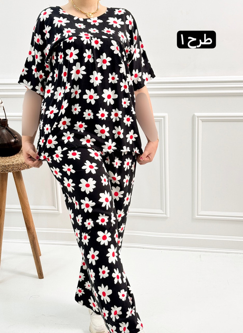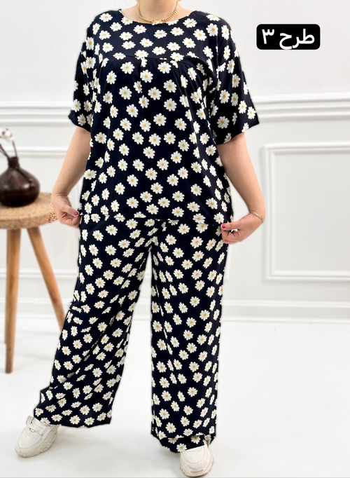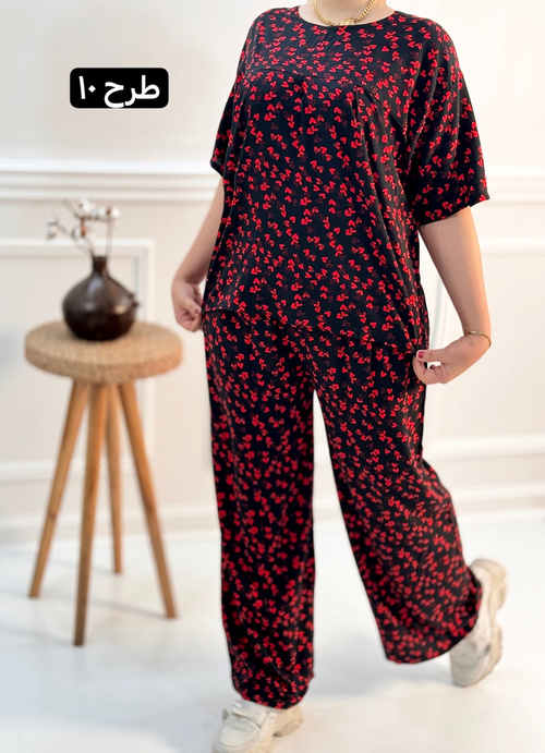 ?جنس ست: نخی?سایز: فری 38 تا 46?قد تیشرت: 68cm?قد شلوار: 100cm?دورسینه : 114cm
