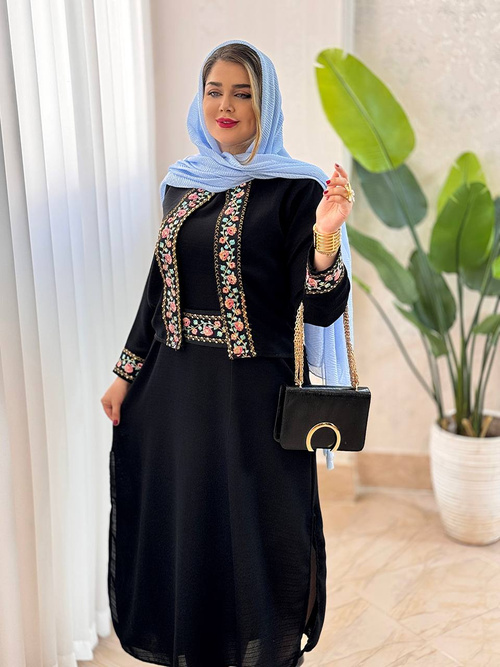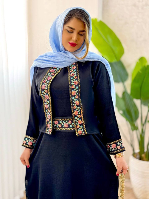 جنس کار: کرپ شانتونقد کت: 53 سانت قد سارافون: 125 سانتدورسینه کت: 110 سارافون 120 سانت دور کمرسارافون 118 دورباسن سارافون 128