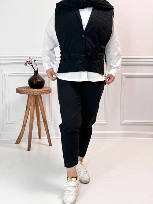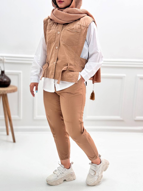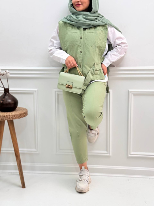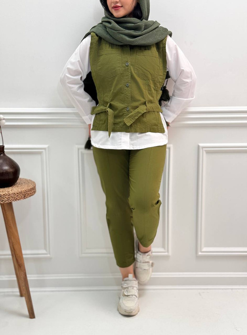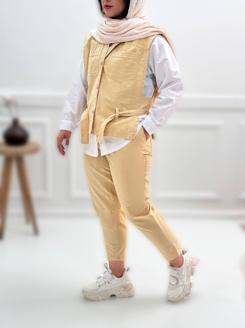 جنس: کتانسایز: فری، مناسب سایز 38-40-42?قد شومیز: 70?دورسینه شومیز: 114قد وست: 58cm?قد شلوار : 92?دوران: 62?دور کمر: حالت عادی 76 کشسانی 96