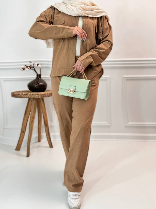 جنس: کتانسایز: فری، مناسب سایز 38-40-42?قد کت: 62?دورسینه : 104?قد شلوار : 107?دوران: 62?دور کمر: حالت عادی 76 کشسانی 100