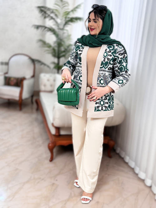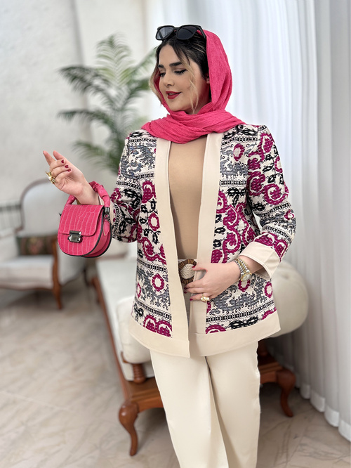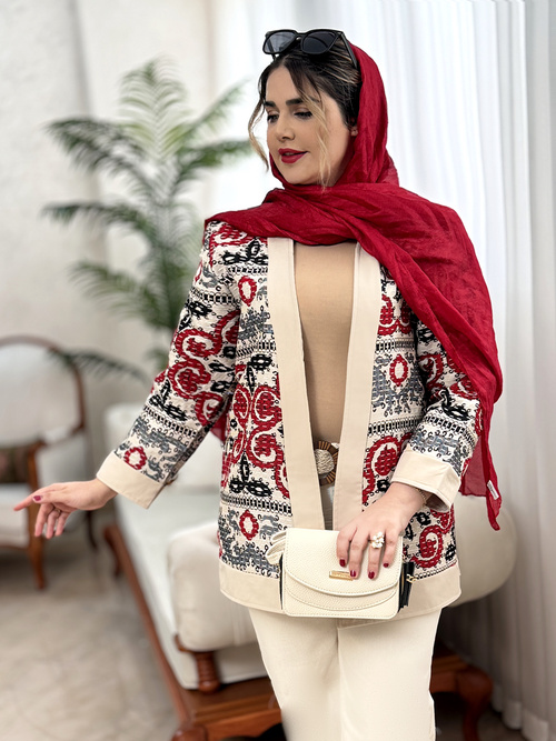 جنس کار: تافته سوزندوزی و مازراتی قد کار: 75 سانتدورسینه: 108 سانت دوربازو: 40 قد آستین از سرشانه : 56