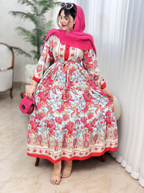 جنس این پیراهن فوق العاده خوشگلمون فلور درجه یک هست که واقعا نرم ولطیفه و مطمئنم برسه دستتون عاشقش میشیدجلو کار دکمه خورده و برای بارداری و شیردهی هم عالیه?قد کار: 132?دورسینه: 110?دوربازو: 44?دورباسن: 150