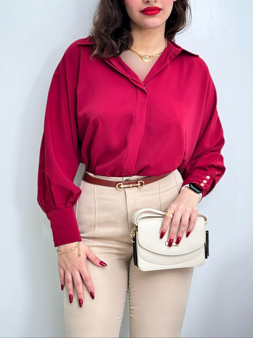 جنس این شومیز کاربردی و زیبا کرپ فلورقد : 66دورسینه :120قد آستین از یقه :74قد آستین از سر شانه : 57دور بازو 40