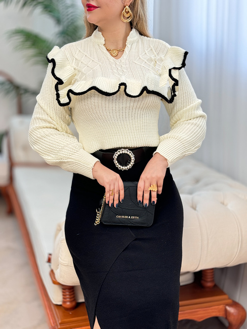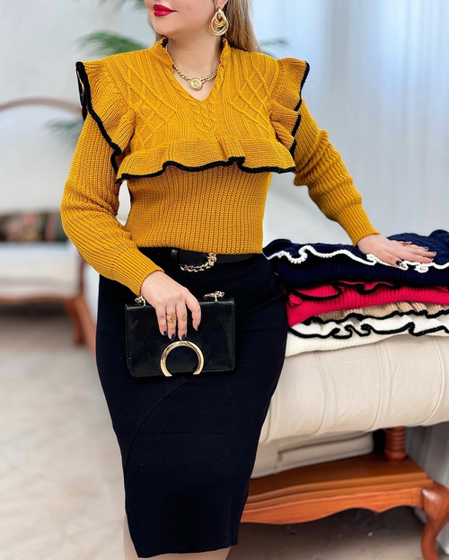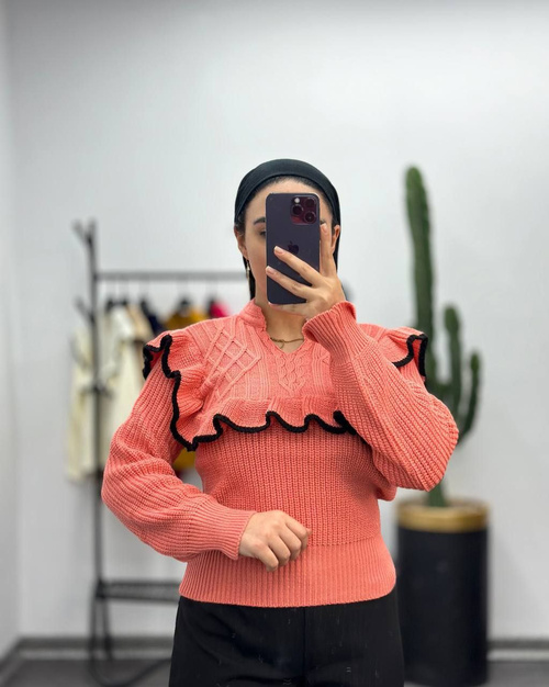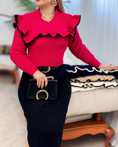 جنس بلوز بافت نخ ترک گرم بالا و باکیفیتفری سایزه تا 44 میشه قد بلوز: 60 سانتدورسینه در حالت کشسانی 112 دوربازو: 42