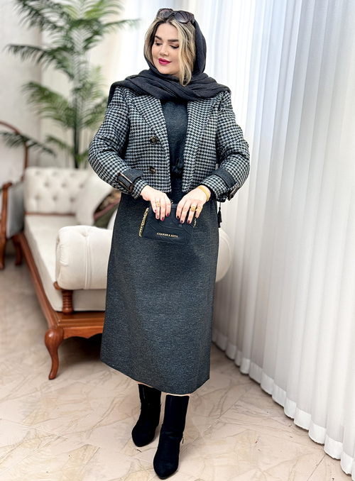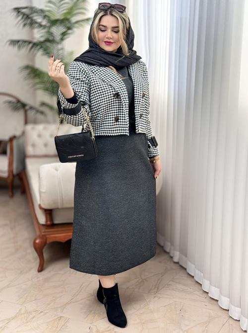 یک ست کت سارافون ترند که خوراک روزهای سر پاییزه جنس پشمی پیچازی پیردوپلقد سارافون 127 دورسینه 110 دورباسن 120قد کت 40 دورسینه 108