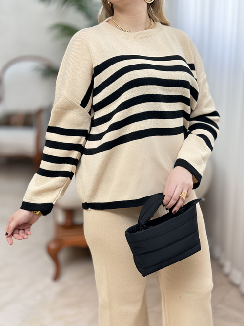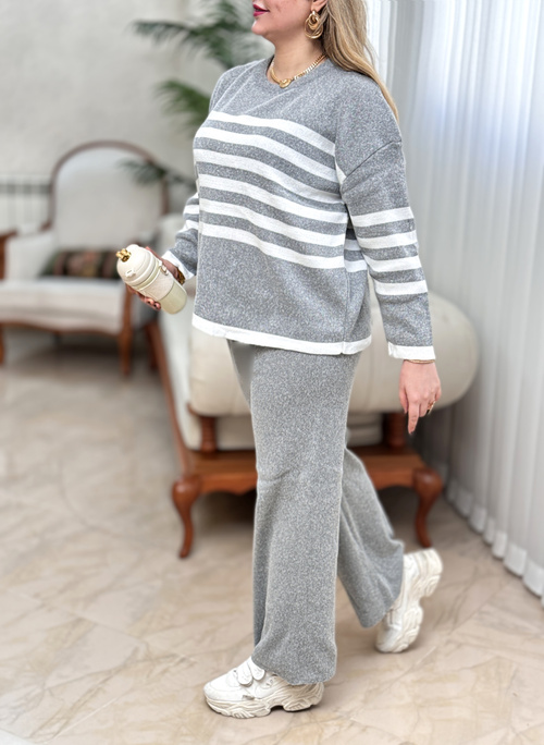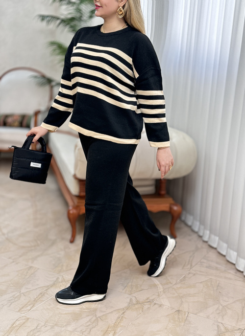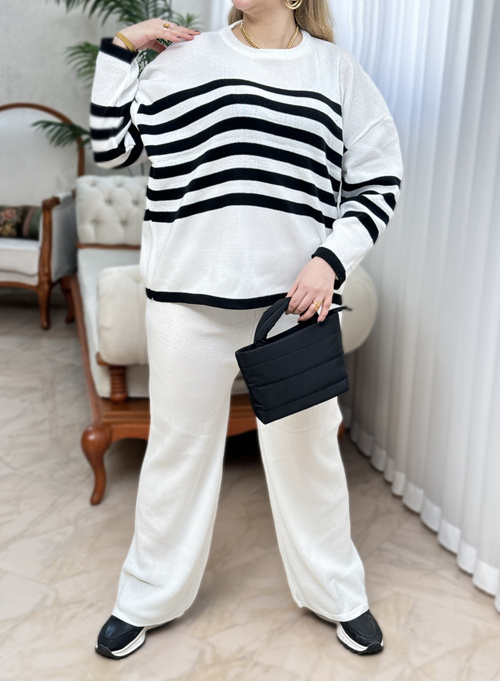 جنس کار بافتسایز 38 تا 46قد بلوز: 60 قد شلوار 102دورسینه بلوز 140 قد آستین از سرشانه 50قد شلوار 102 دورران 66 دورکمر حالت عادی 30 کشسانی 110