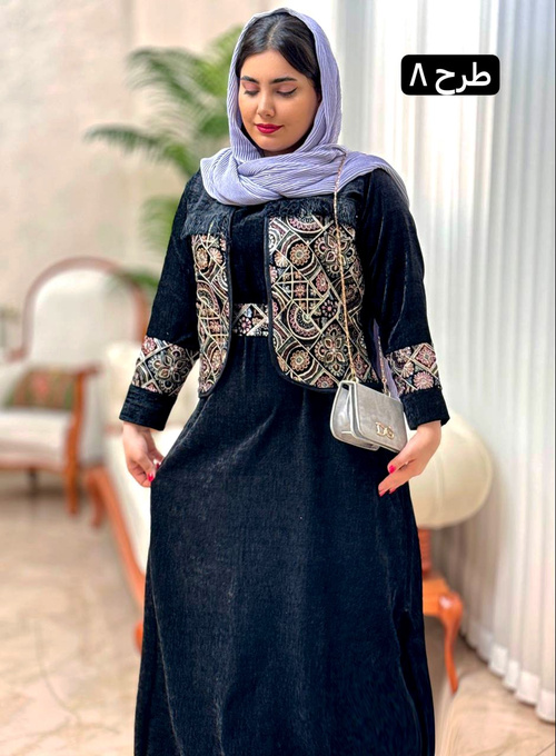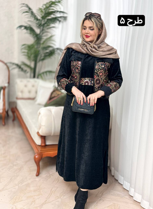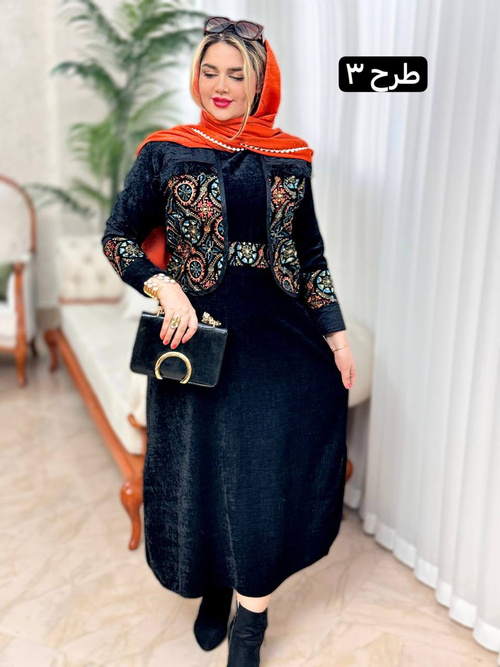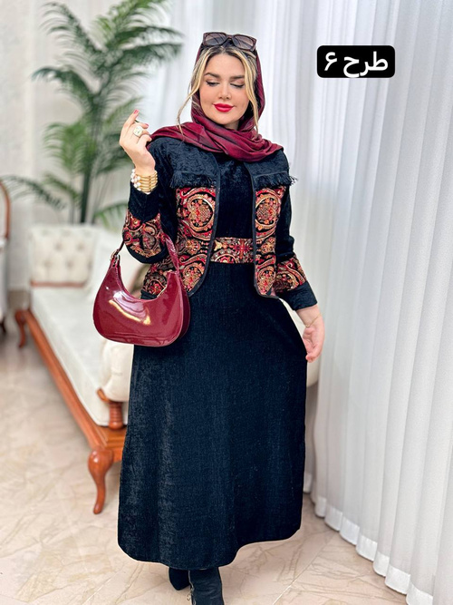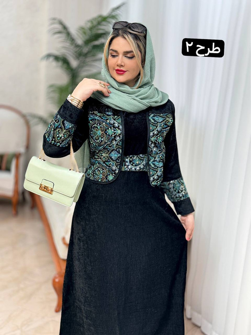 جنس کار مخمل و سوزندوزیسایز 38 تا 46قد سارافون 132 دورسینه سارافون 116 دورباسن 120قد کت 52 دورسینه 110