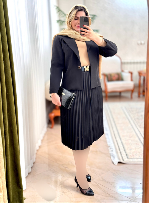 قد کت: 62 قد دامن: 81سایز یک : مناسب (40-38) دورسینه : 100 دورکمر در حالت کشسانی 90سایز دو مناسب (44-42): دورسینه : 110 دورکمر کشسانی : 95سایز سه مناسب(48-46): دورسینه :114 دورکمر حالت کشسانی 100