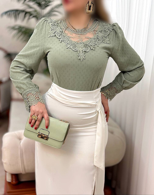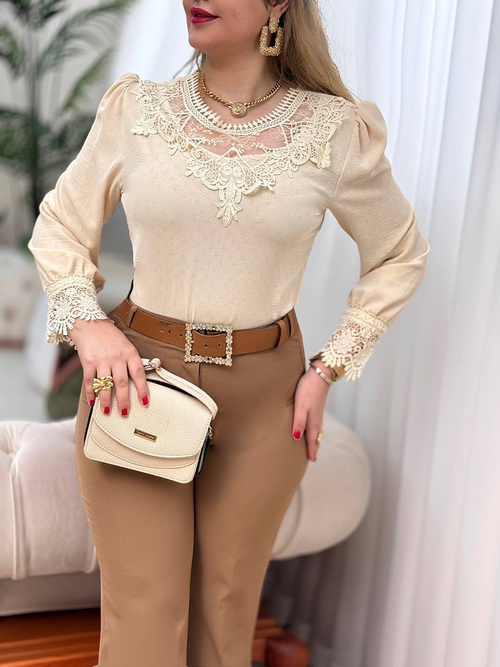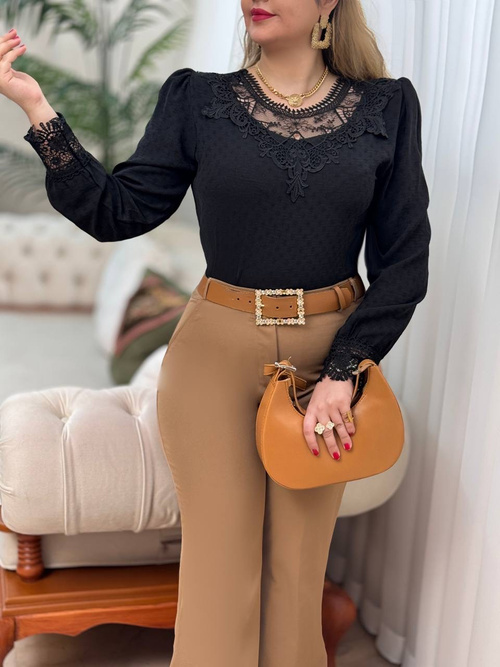 شومیز مجلسی یقه و سر آستین دانتل سایز بندی : 38 تا 42جنس : کرپ