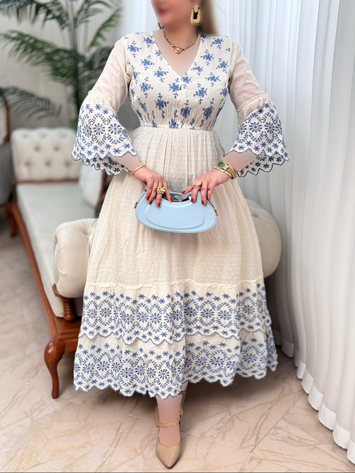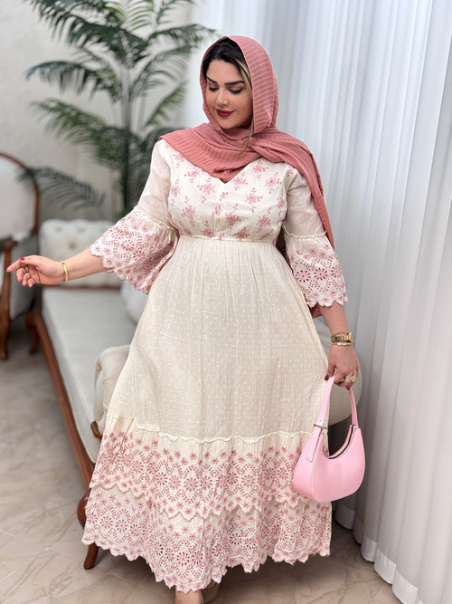جنس نخ هندی گلدوزیچهارسایزسایزیک:38-40 دورسینه 100سایز دو:42 دورسینه 103سایزسه:44 دورسینه 106سایزچهار:46 دورسینه 110قد کار: 138