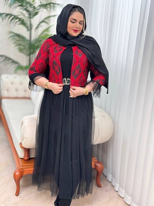 جنس کت : جلوی کار گلیمی _ پشت کار کرپ جنس دامن : تور *دامن آستر دارد*سایز بندی : فری 38 تا 44قد کت :45 سانتی متر قد دامن :95 سانتی متر