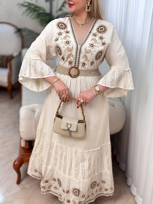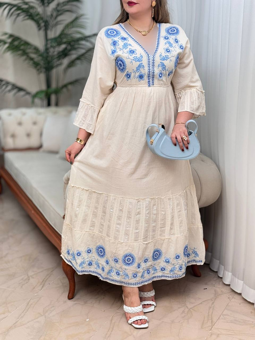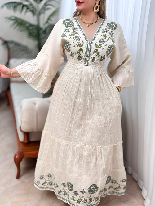 جنس : نخ هندی سایزبندی : فری تا 46قد : 133 سانتی متر قد آستین از یقه : 54 (سرشانه متصل)دور سینه : 112 سانتی متر دور بازو : 48 سانتی متر
