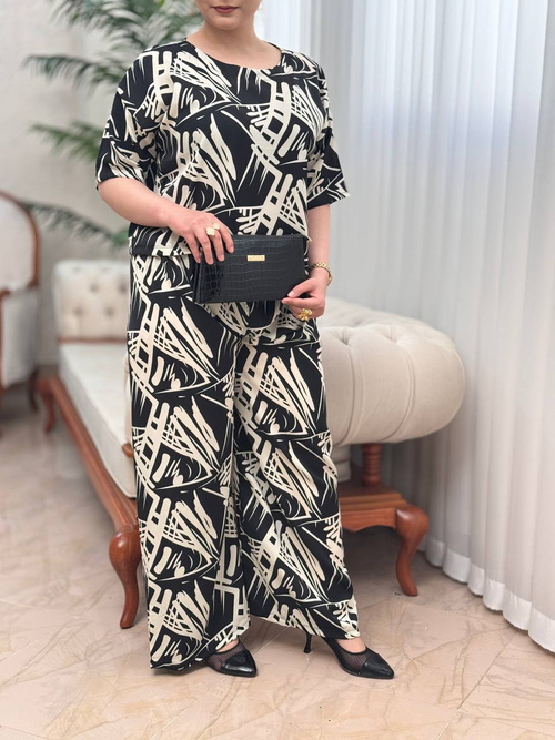 جنس : الیزه سایزبندی : 38 تا 44قد بلوز : 50 سانتی متر قد شلوار :100 سانتی متر