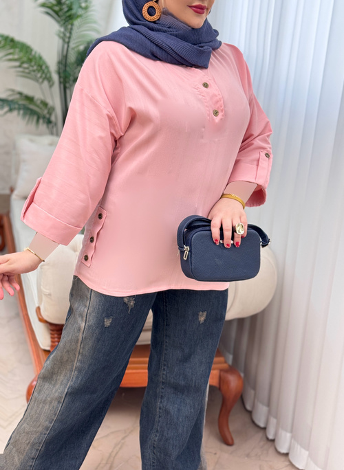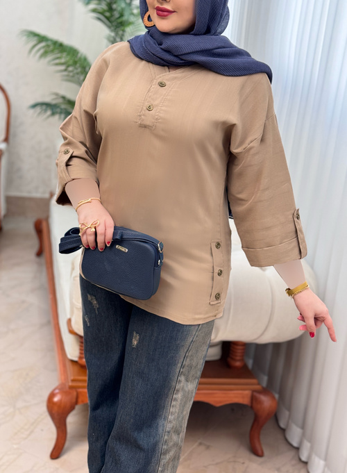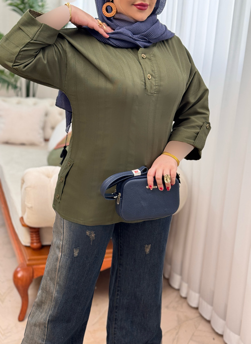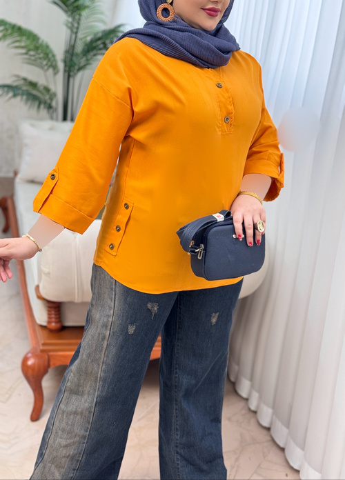 یک تونیک با قد عالی و فوق العاده خنک که کنار کار و جلو یقه دکمه نما داره