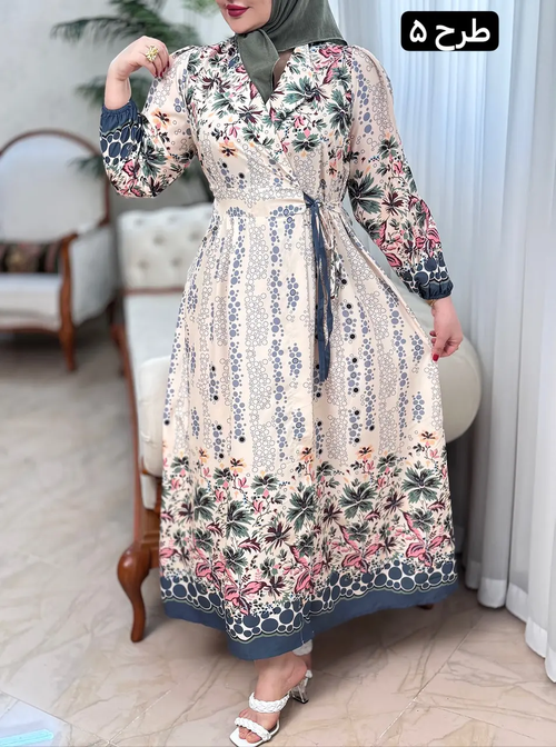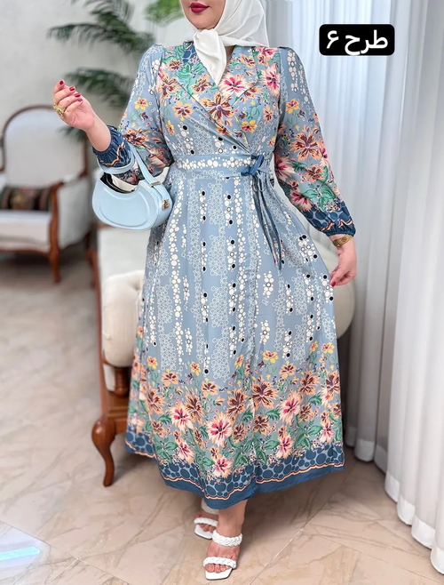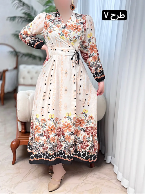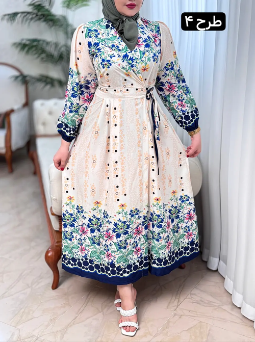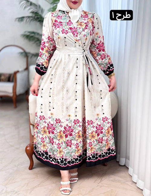 مدل پیراهن بصورتی هست که دو طرف روی هم میاد و با بند تنظیم میشه و بسته میشه برای همین توی تن سایز های مختلف خیلی خوشگل میشینه